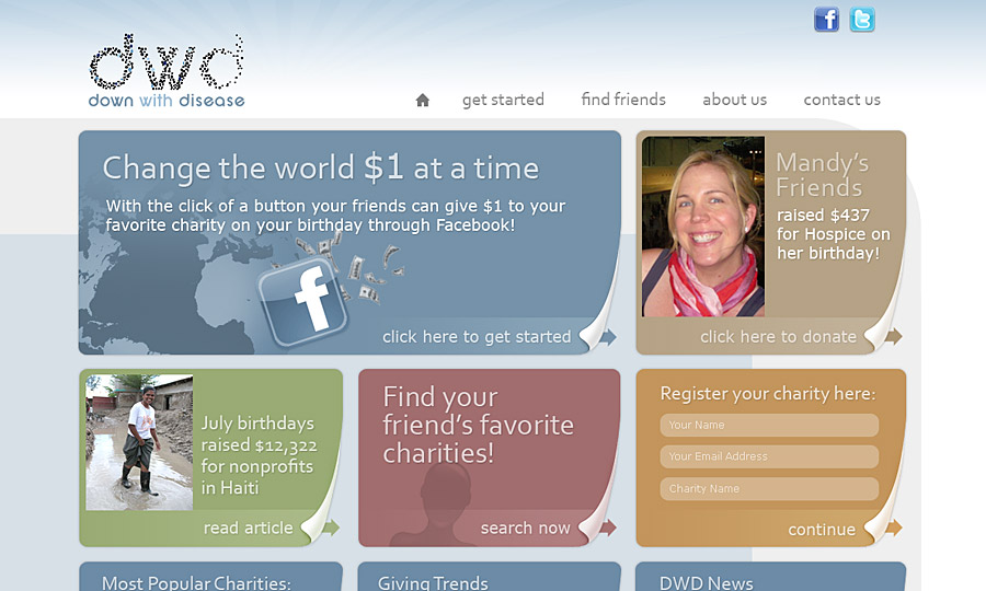 Website design for donating to charity through facebook.