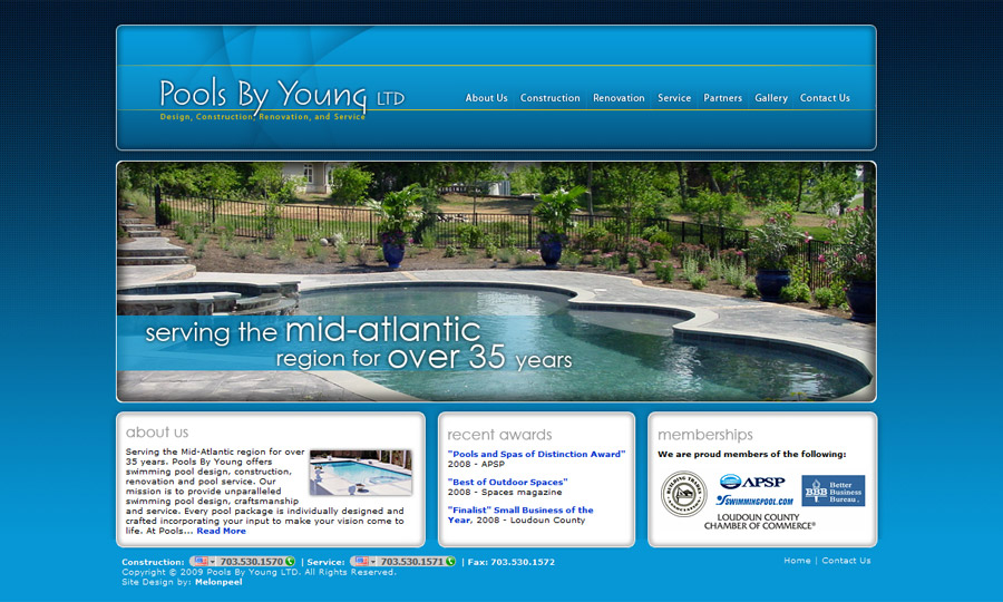 Website deisgn & development for a pool & living-spaces construction firm in Northern Virginia.