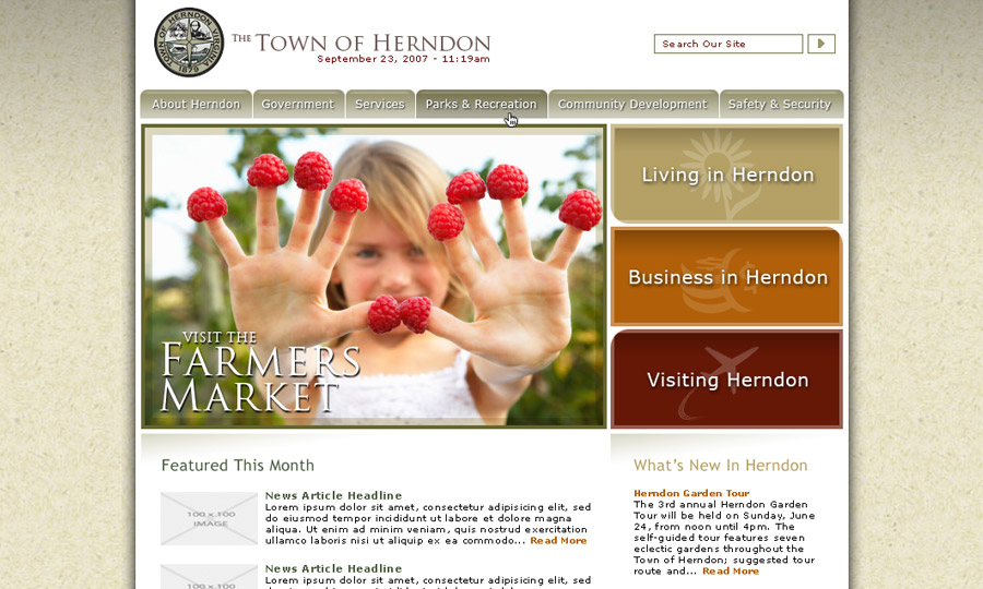 Website design for the official gov't site of the Town of Herndon, Virginia.