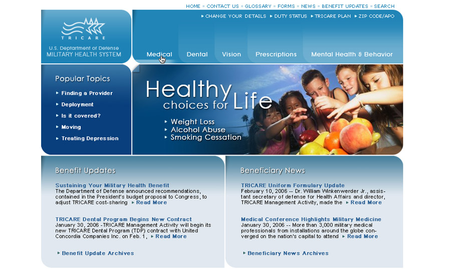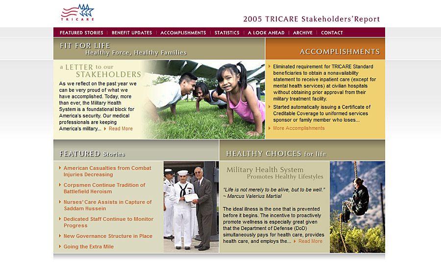 Website design for the Health Affairs Administration of the Dept. of Defense.