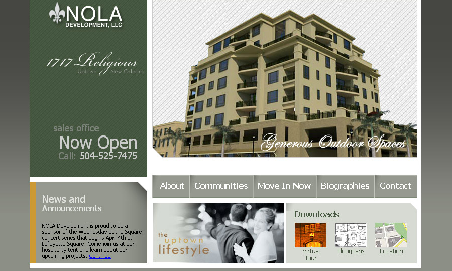 Website design for luxury condominium building in New Orleans LA.