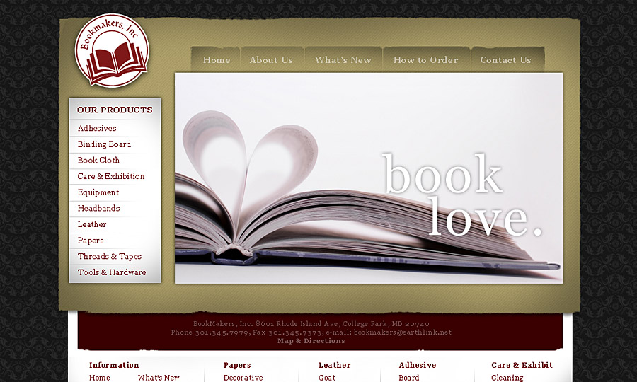 Website design & development for book making supply company from Maryland.