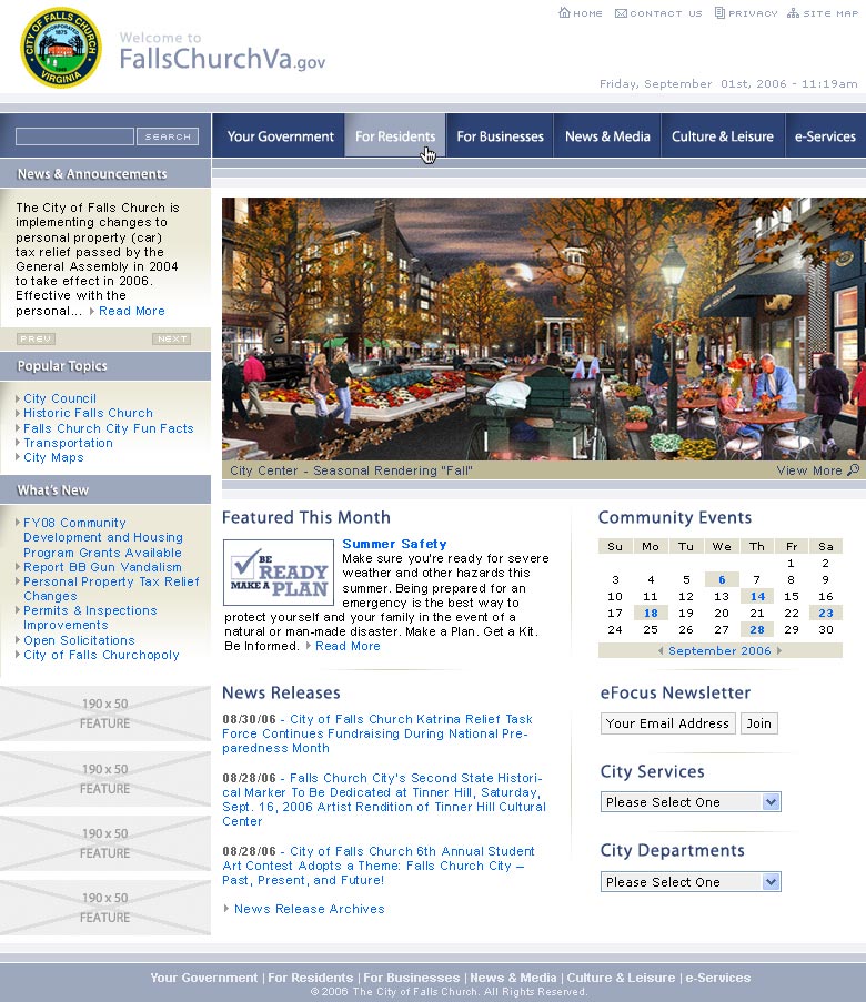 Website design for a the City of Falls Church Virginia.